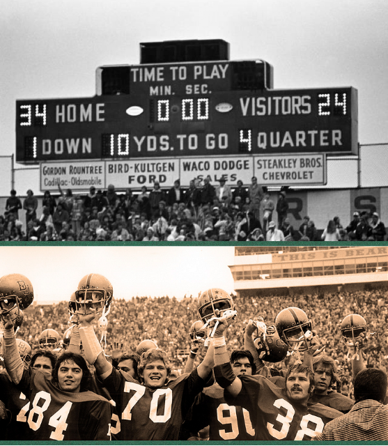 But Teaff’s words at halftime must have been special. The Bears bolted out of the locker room and scored 27 unanswered points, defeating the Horns 34-24. Bears fans remained in the stadium for hours after the final gun, soaking it all in with amazement. According to Teaff, “they announced the attendance for that game as 43,000, but I’ll guarantee you I’ve had at least 80,000 people tell me they were there to see every play in the second half.” Ask anyone from Waco, and they’ll tell you all about the 1974 “Miracle on the Brazos.”