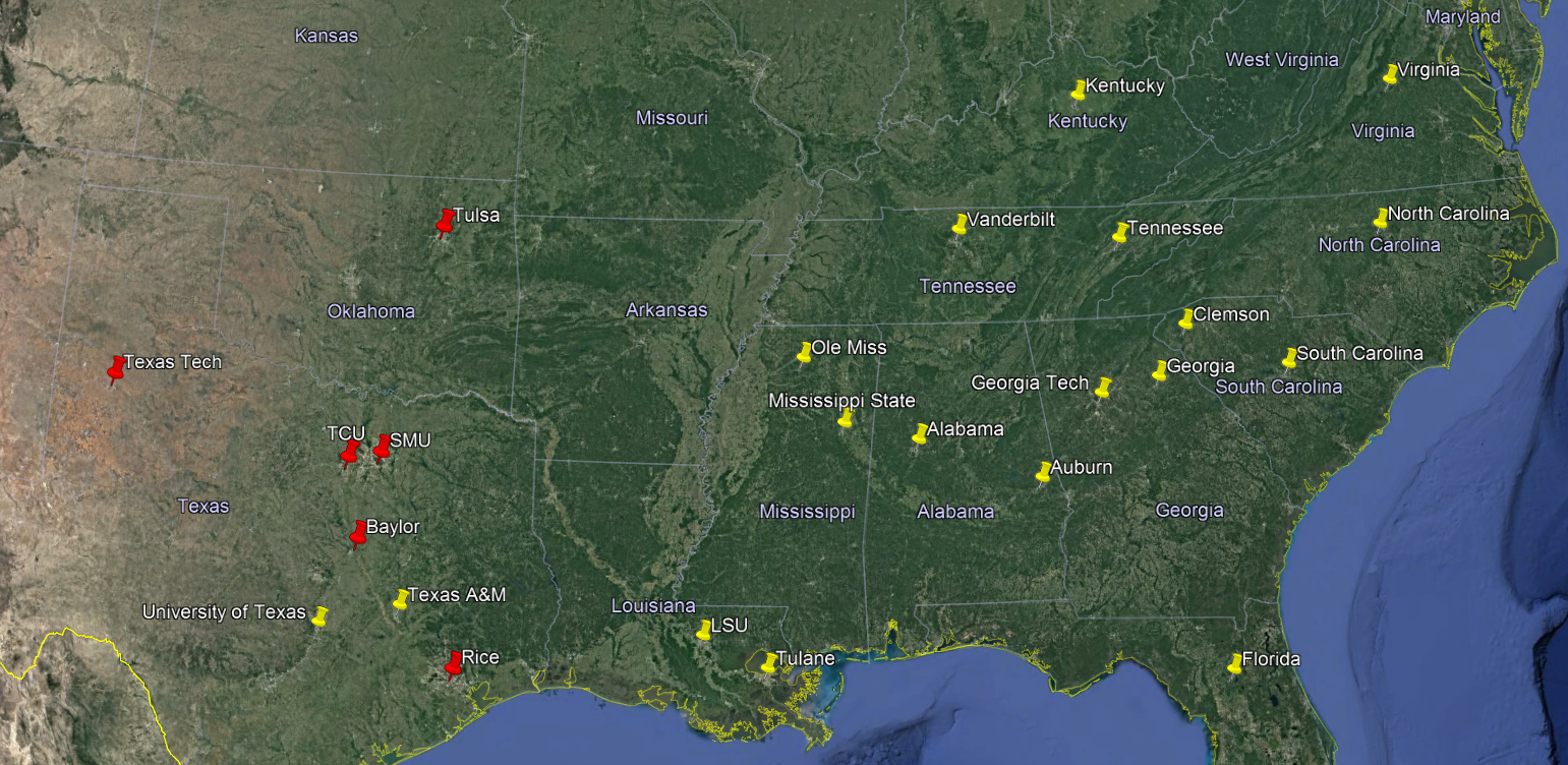 Austin College and Sewanee were both battling again in 1905 against the best the state of Texas had to offer. On October 21, A&M traveled to Sherman and just got by the Roos, 18-11. A few weeks later, Sewanee made their way to Austin and fell to the Horns 17-10. These Roo/Tiger close calls became increasingly common for larger schools from Texas to Virginia in the early 20th century. As AC became an “SWC giant killer”, Sewanee transformed itself into an “SEC giant killer” on steroids. See photo in the comments of every southern school that has fallen short against the Roos (red) or Tigers (yellow).