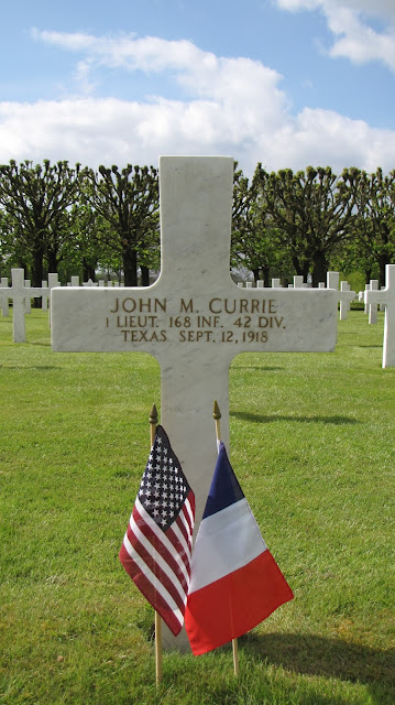 The American Cemetery at St. Mihiel lies less than a mile from Thiaucourt, and is a final resting place for John Morgan Currie and other soldiers who gave their lives during the St. Mihiel offensive. In the town of Flirey, a monument can be found honoring the American and French soldiers who fought together to liberate the town and the region. The inscription on the Flirey monument reads “La Lorraine aux Etats-Unis (USA) 12 September 1918”.