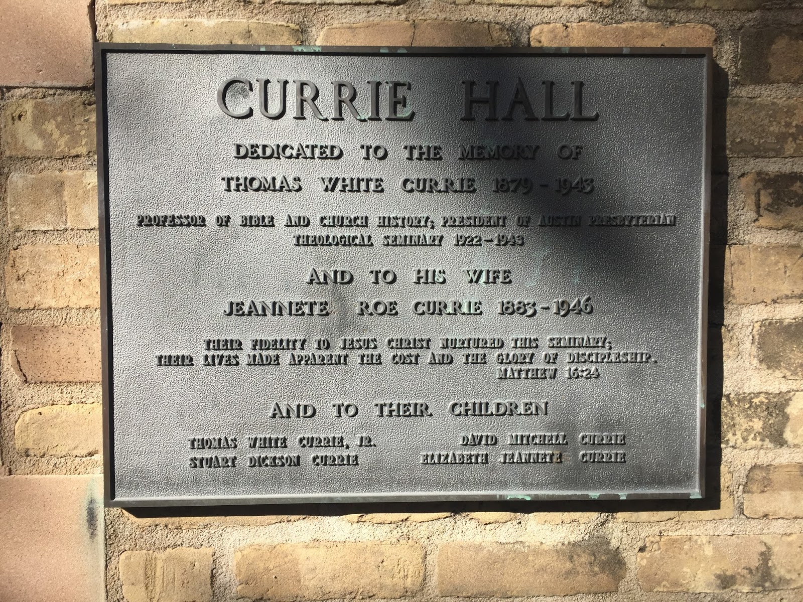 By 1919, older brother Thomas Currie (AC ’08) had already received a B.D. from Austin Presbyterian Theological Seminary, just north of DKR Texas Memorial Stadium. He eventually joined the Seminary faculty, and later became President. The chief residence hall at the Seminary is named in his honor. As President, he oversaw the completion of the seminary’s Shelton Chapel in 1943.