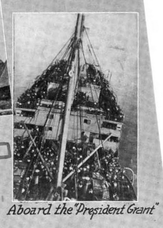 The Rainbow Division began to make preparations for the European theatre. On October 18th, 5500 men from the 42nd boarded the President Grant in New York Harbor, just as the sun was setting. The British battleships that escorted the Grant played both the National Anthem and the recently composed “Over There” as America faded out of view. They arrived in Liverpool, England, and began to make their way south. Under cover of darkness, and illuminated only by English search lights scanning the skies, the 42nd crossed the Channel from Southampton to Le Havre, France.