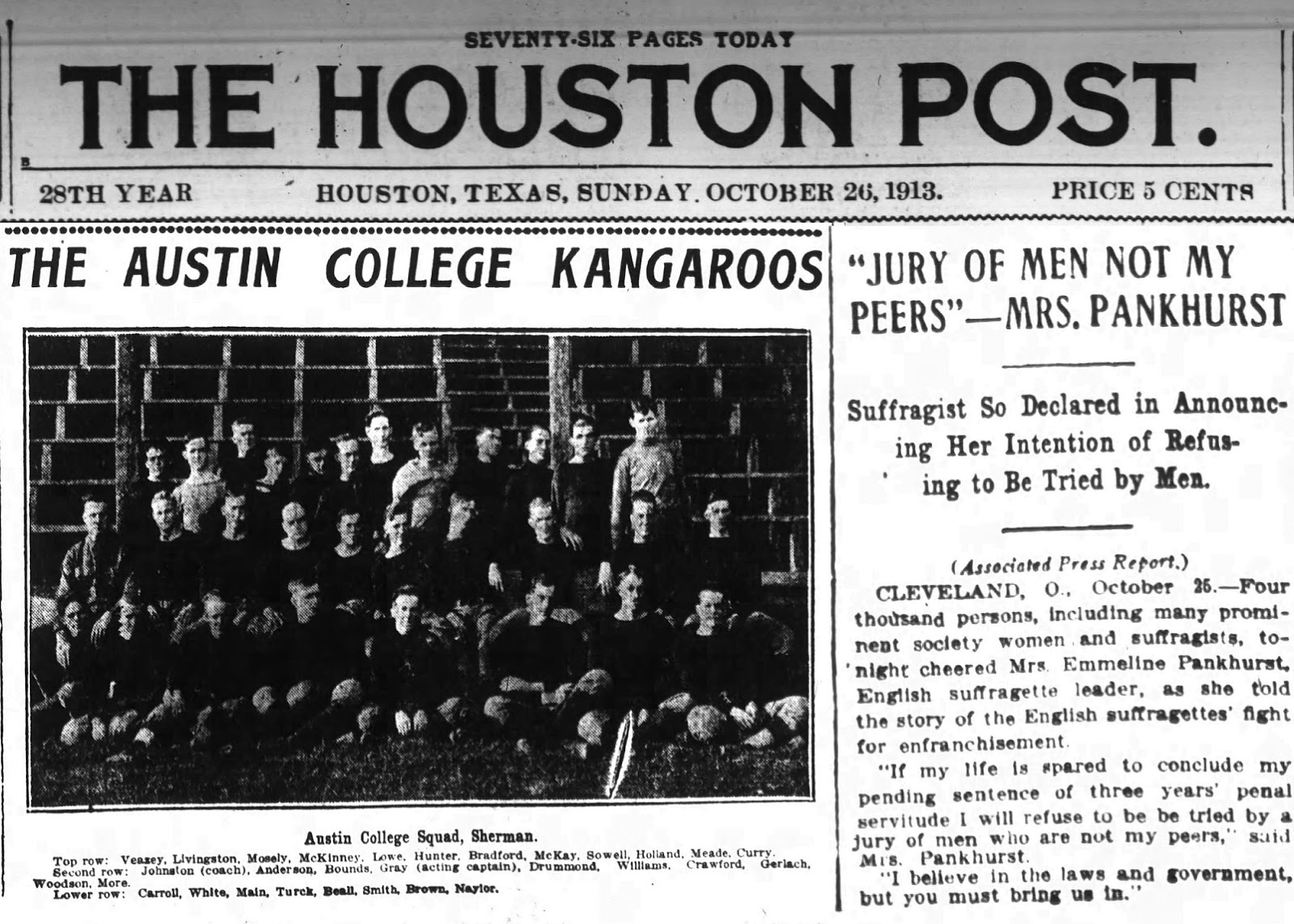 The 1913 Kangaroos were featured in the October 26, 1913 Houston Post. See photo.